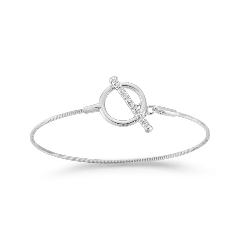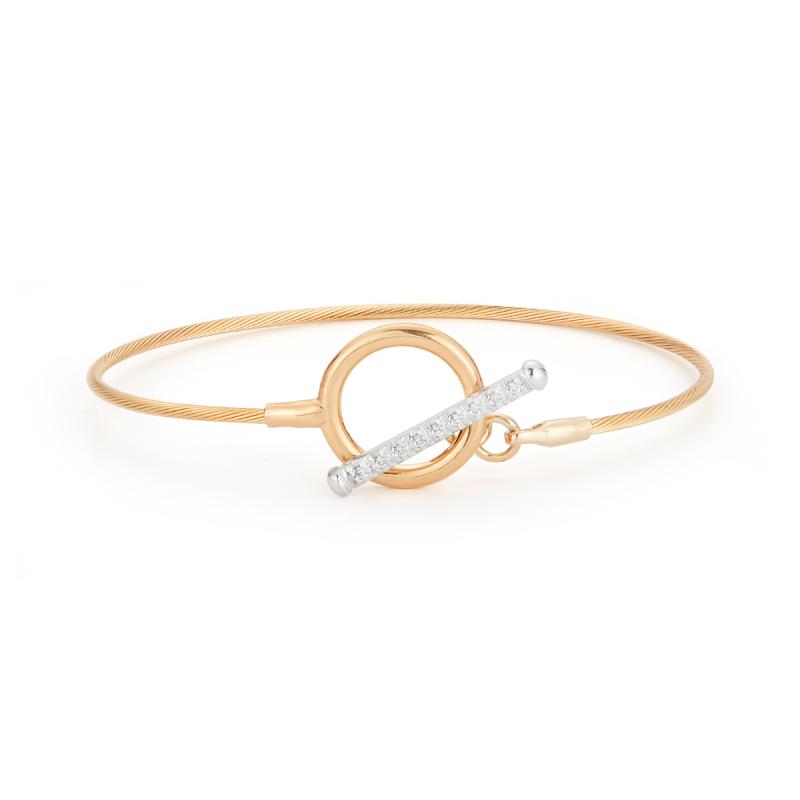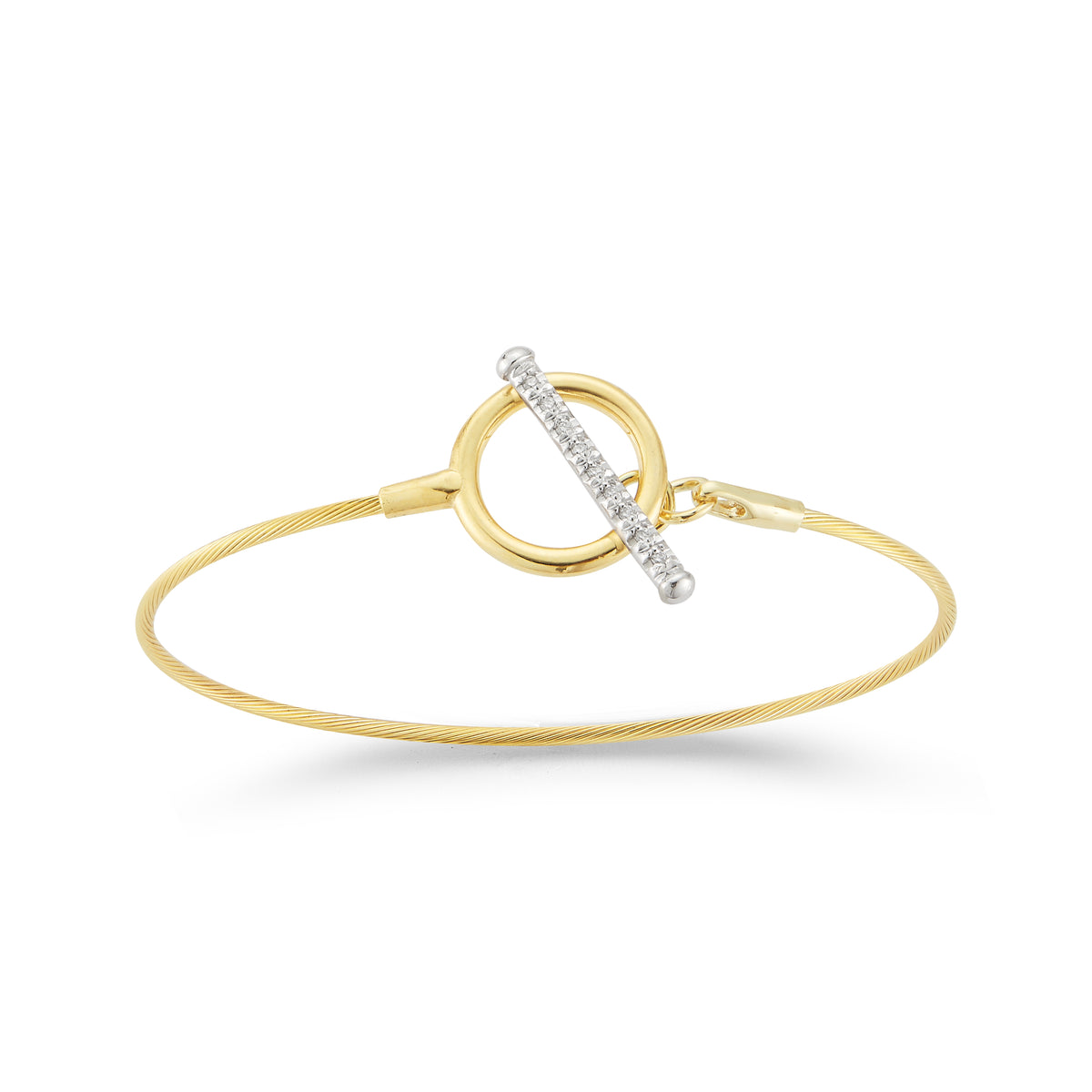 14 karat yellow gold 1 5mm toggle wire bracelet accented with 0 10 carats of pave set diamonds
