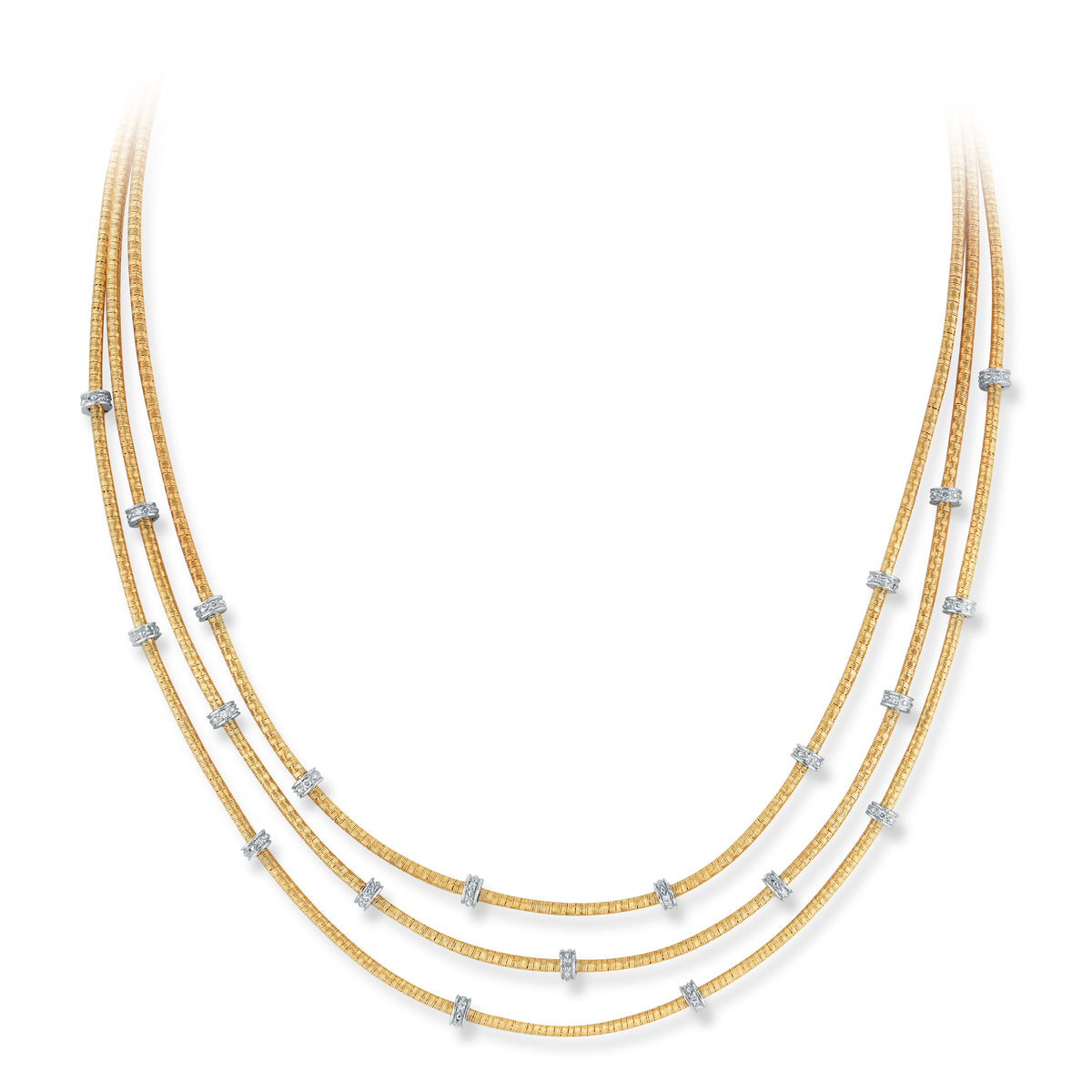 14 karat yellow gold multi-strand cocoon necklace with 0 50 carat of pave set roundels
