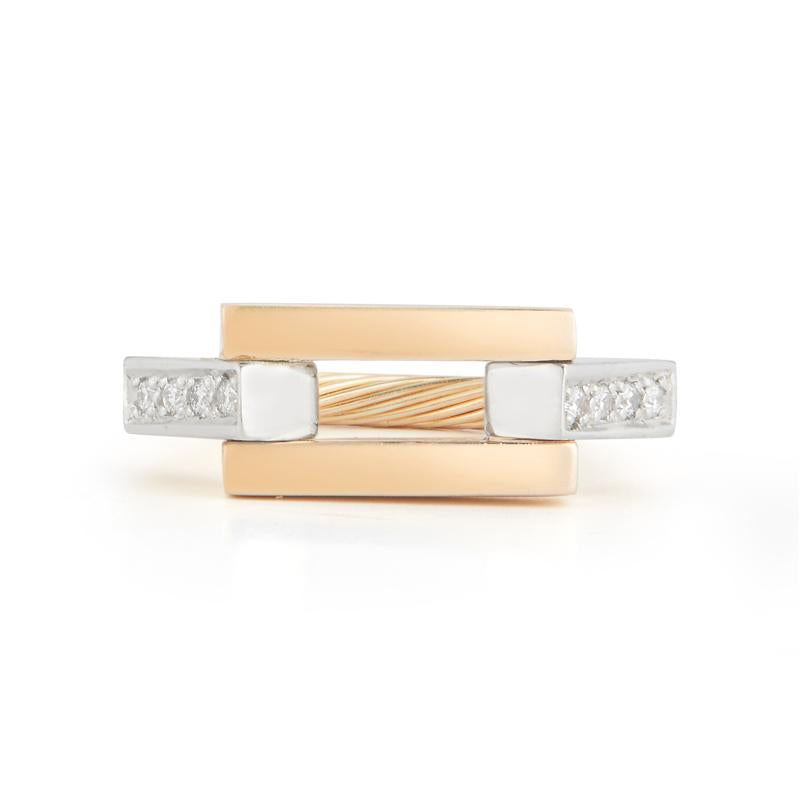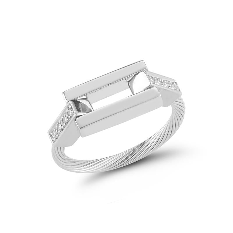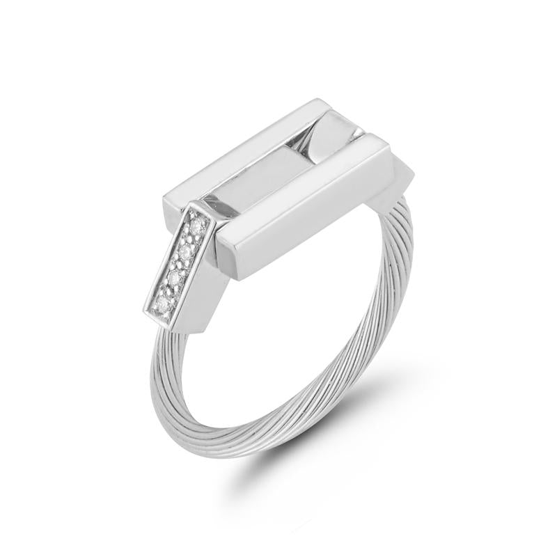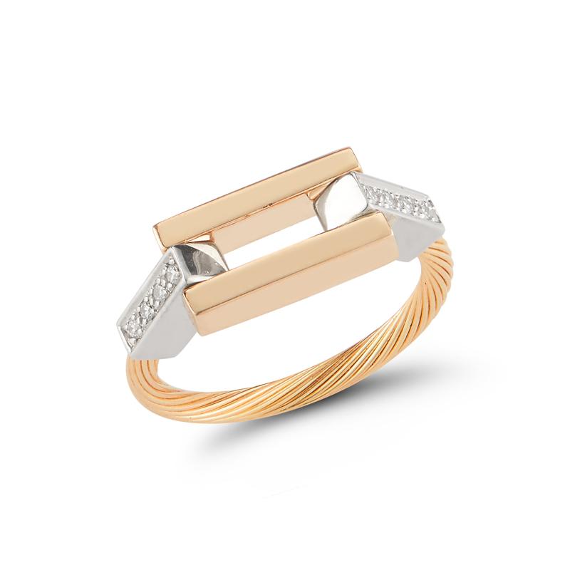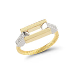 14 karat yellow gold open rectangle wire ring accented with 0 07 carats of pave set diamonds