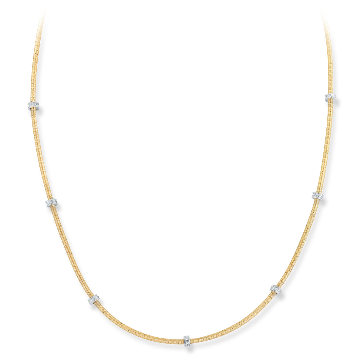 14 karat yellow gold single-strand cocoon necklace with 0 15 carat of pave set diamonds