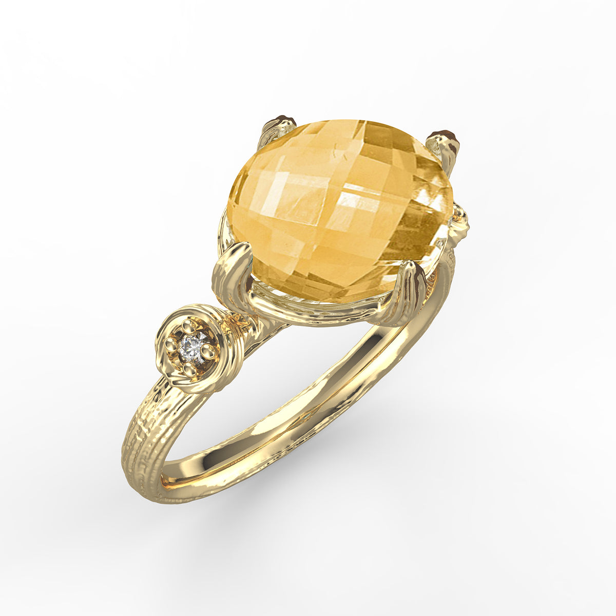 14K Gold 0.05 ct. tw. Diamond & 2.45CT Citrine Cocktail Ring