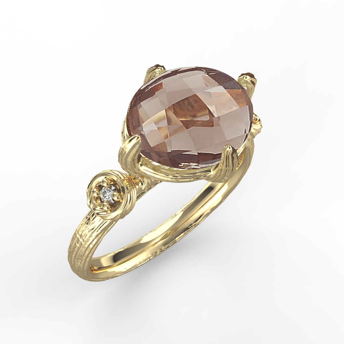 14K Gold 0.05 ct. tw. Diamond & 2.45CT Smokey Topaz Cocktail Ring