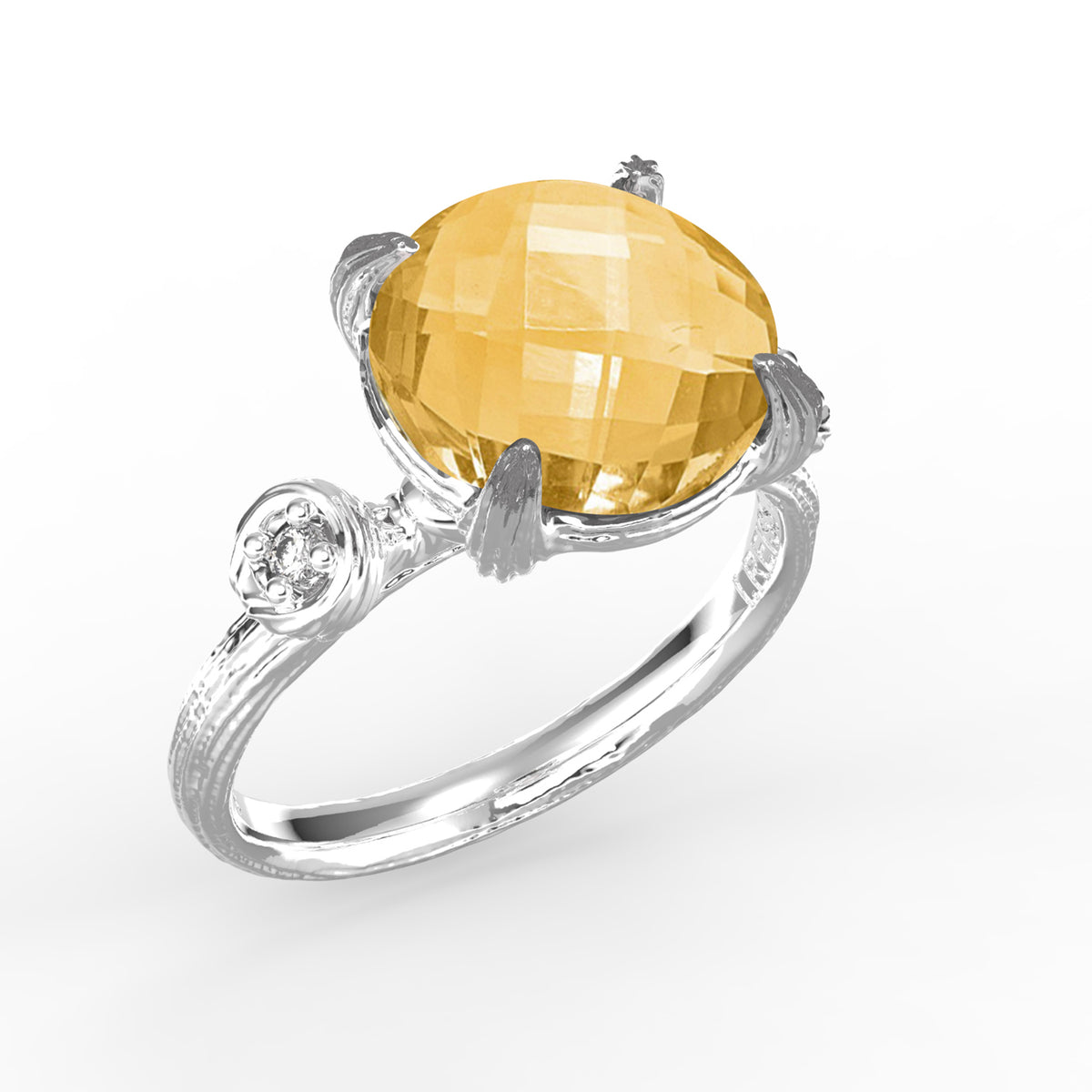 14K Gold 0.05 ct. tw. Diamond & 3.35CT Citrine Cocktail Ring