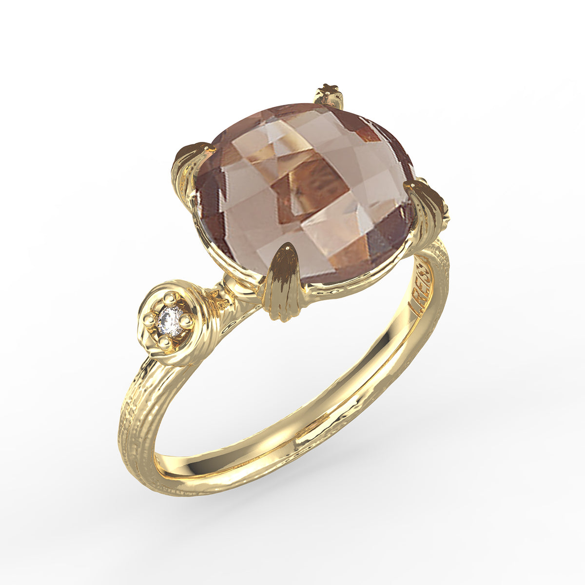 14K Gold 0.05 ct. tw. Diamond & 3.5CT Smokey Topaz Cocktail Ring