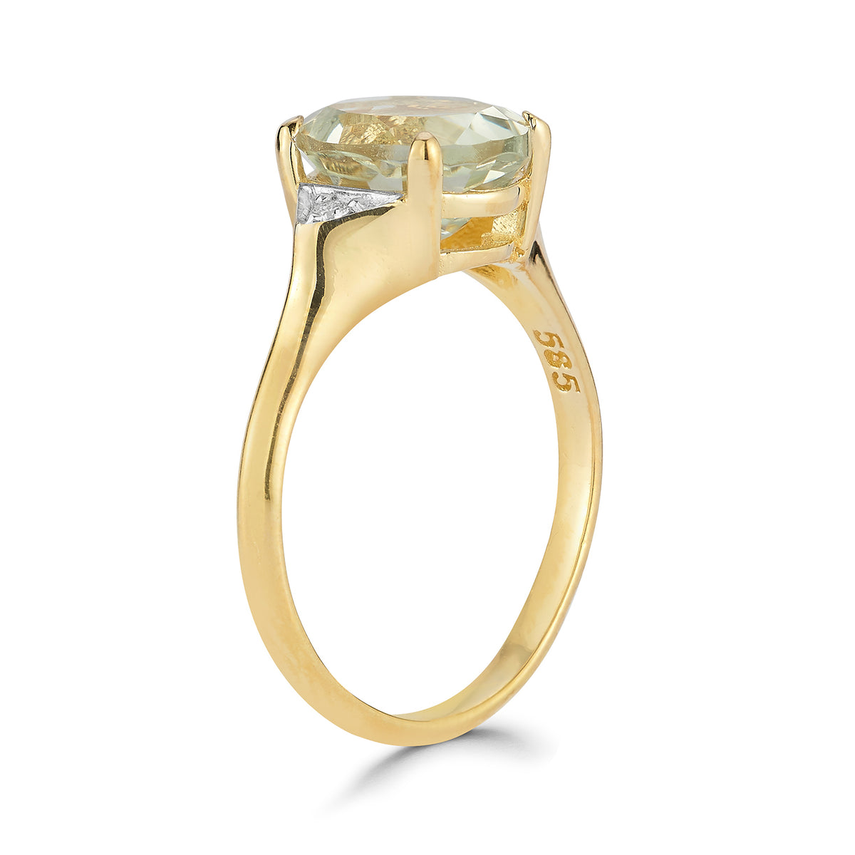 14K Gold 0.05 ct. tw. Diamond & 5.25CT Green Amethyst Cocktail Ring