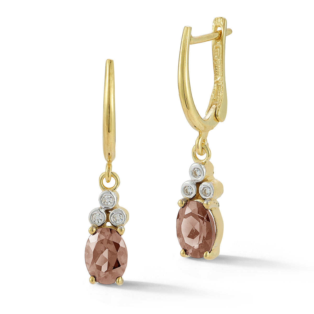 14K Gold 0.09 ct. tw. Diamond & 2.34CT Smokey Topaz Dangling Earrings