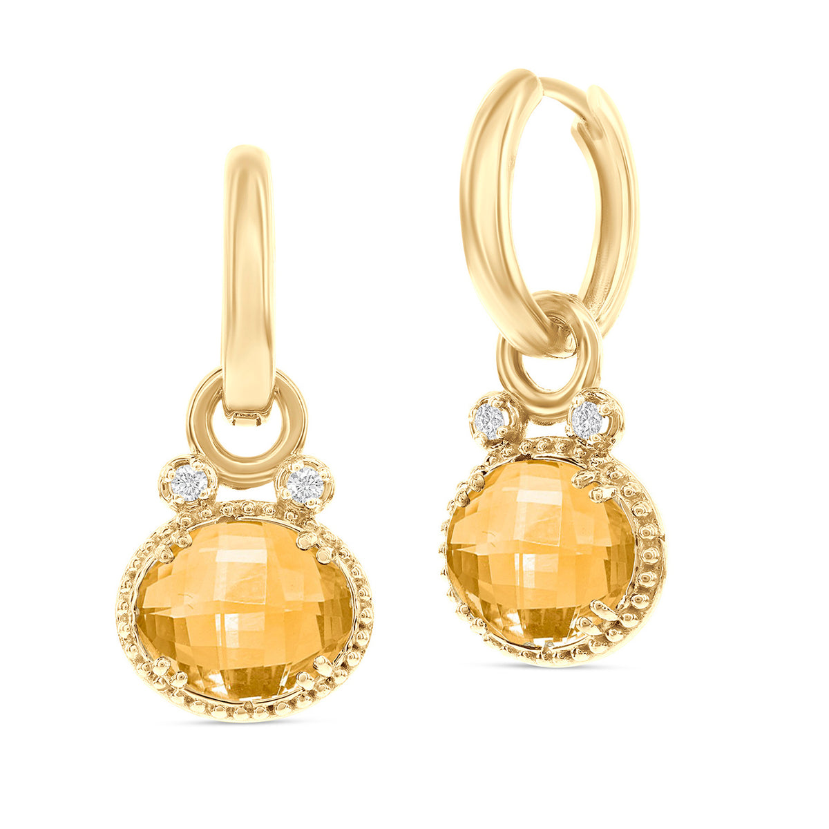 14K Gold 0.10 ct. tw. & 4.9CT Citrine Color Stone Earrings