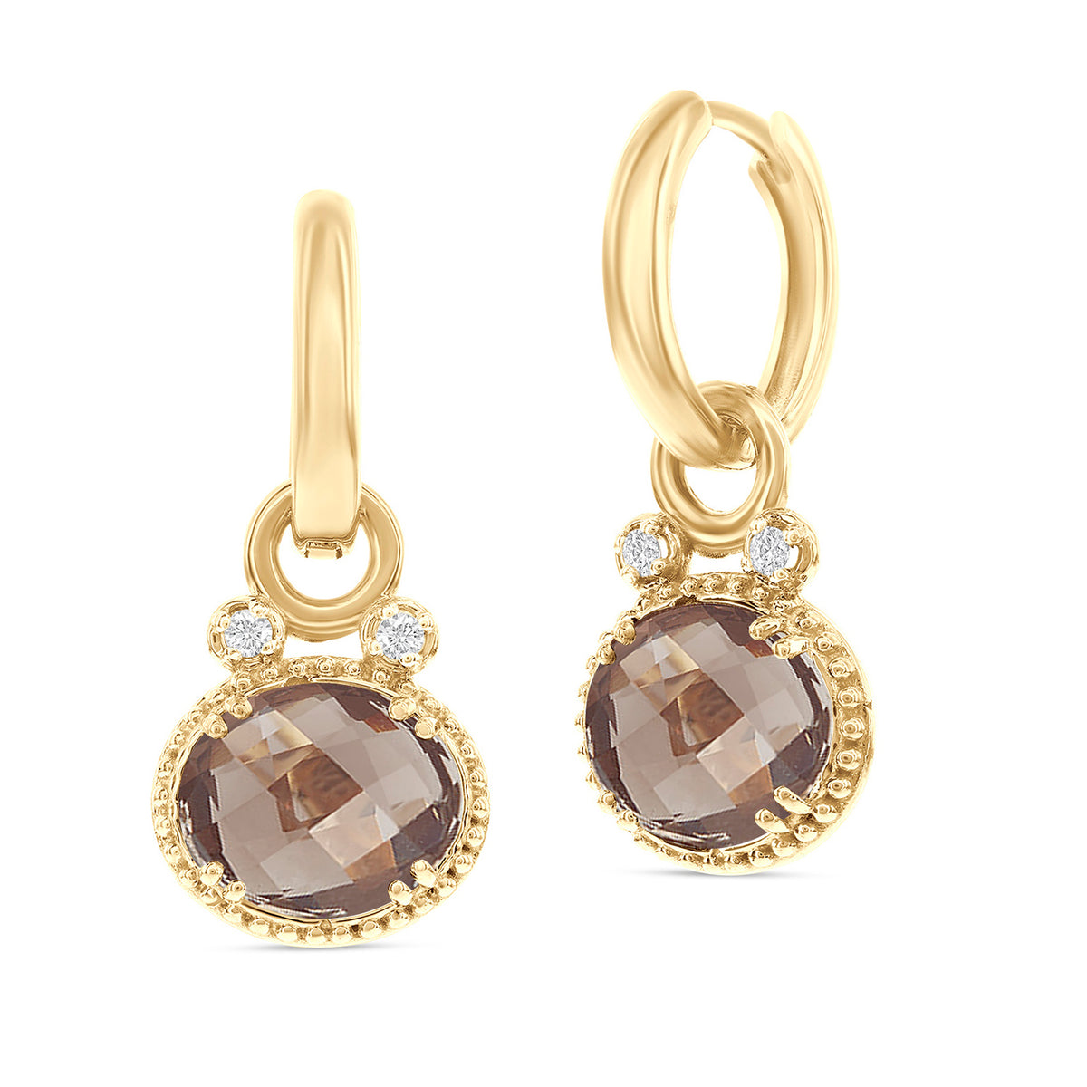 14K Gold 0.10 ct. tw. & 4.9CT Smokey Topaz Color Stone Earrings