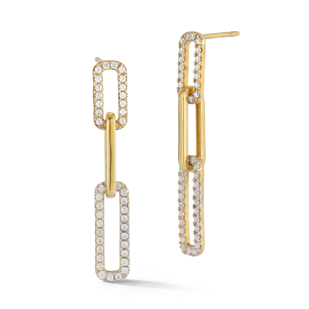 14 karat yellow gold polish-finished dangling open link earrings, accented with 0.50 carats of pave set diamond rectangle motifs.