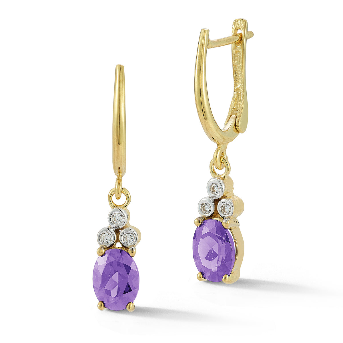 14K Gold 0.09 ct. tw. Diamond & 2.28CT Amethyst Dangling Earrings