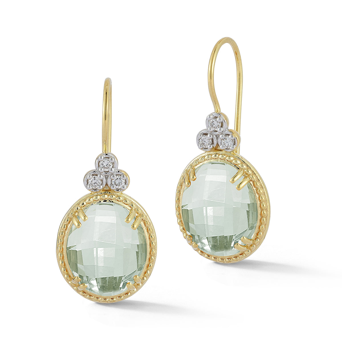 14K Gold 0.12 ct. tw. Dia. & 7.4CT Green Amethyst Drop Earrings