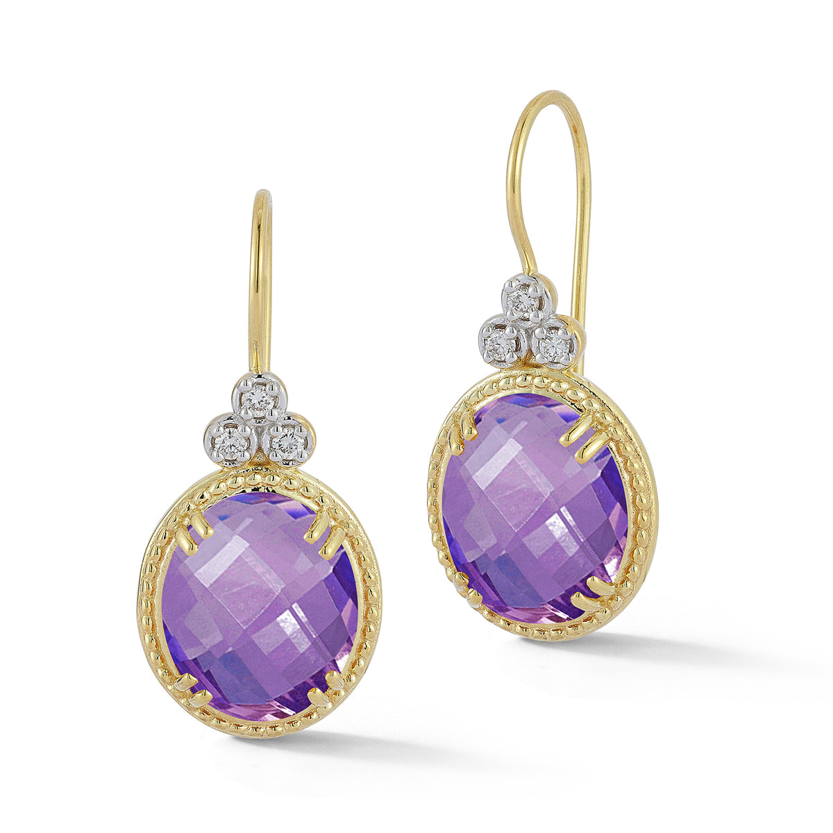 14K Gold 0.12 ct. tw. Dia. & 7.8CT Amethyst Drop Earrings