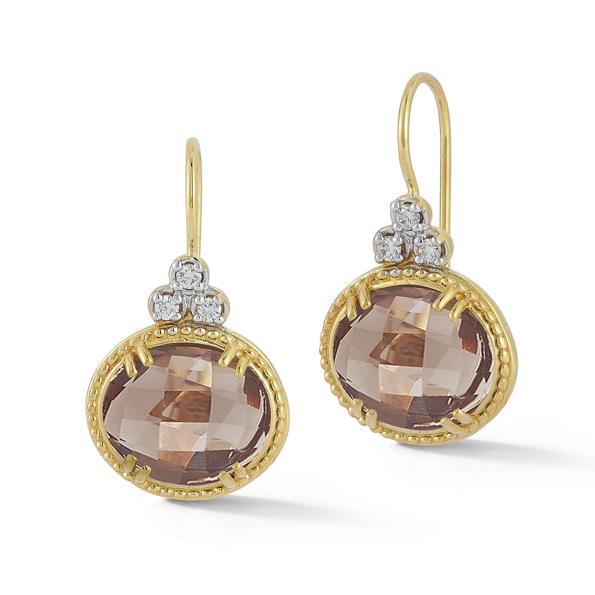 14K Gold 0.13 ct. tw. & 7.6CT Smokey Topaz Earrings