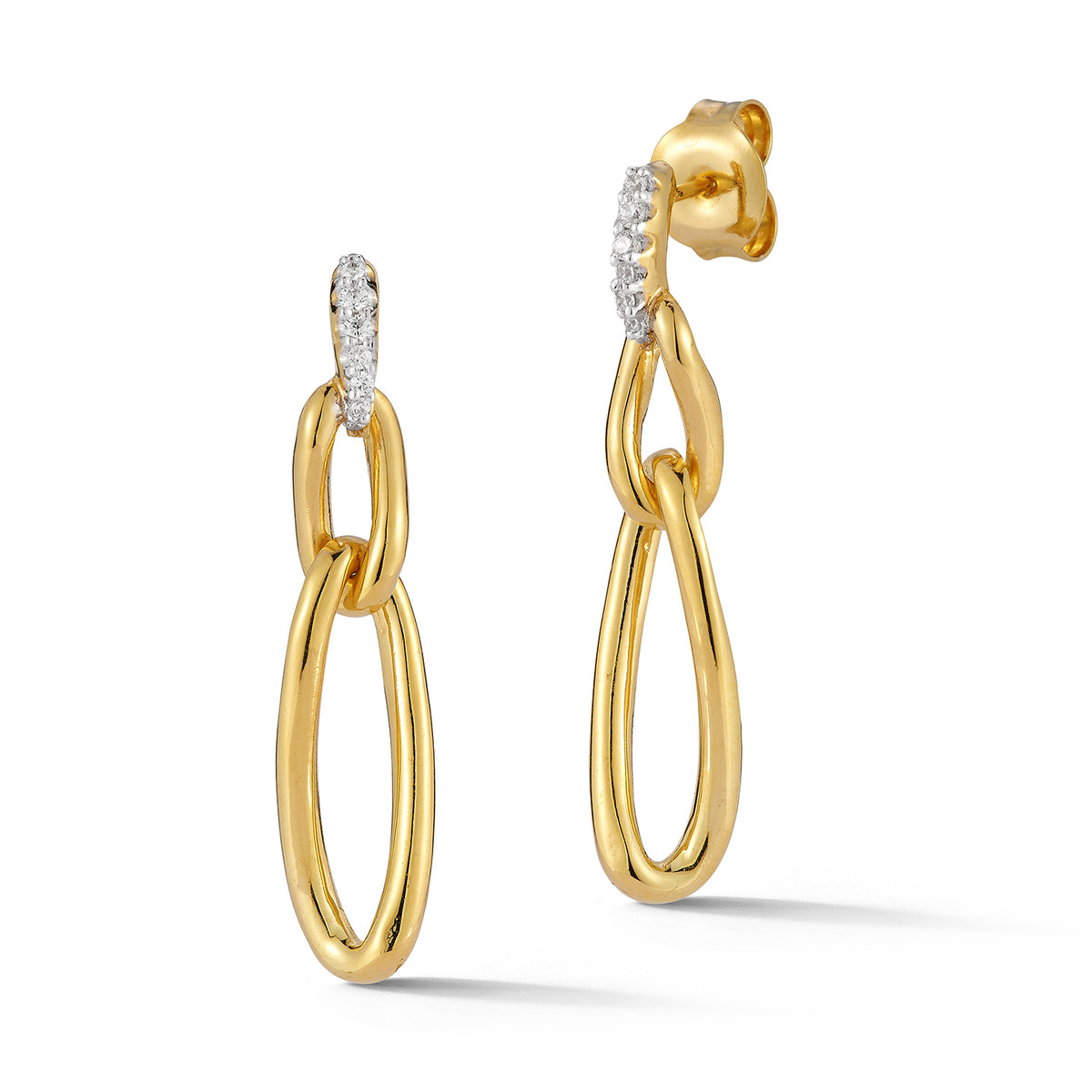 14 karat yellow gold matte-finished dangling link earrings, accented with 0.16 carats of pave set diamonds