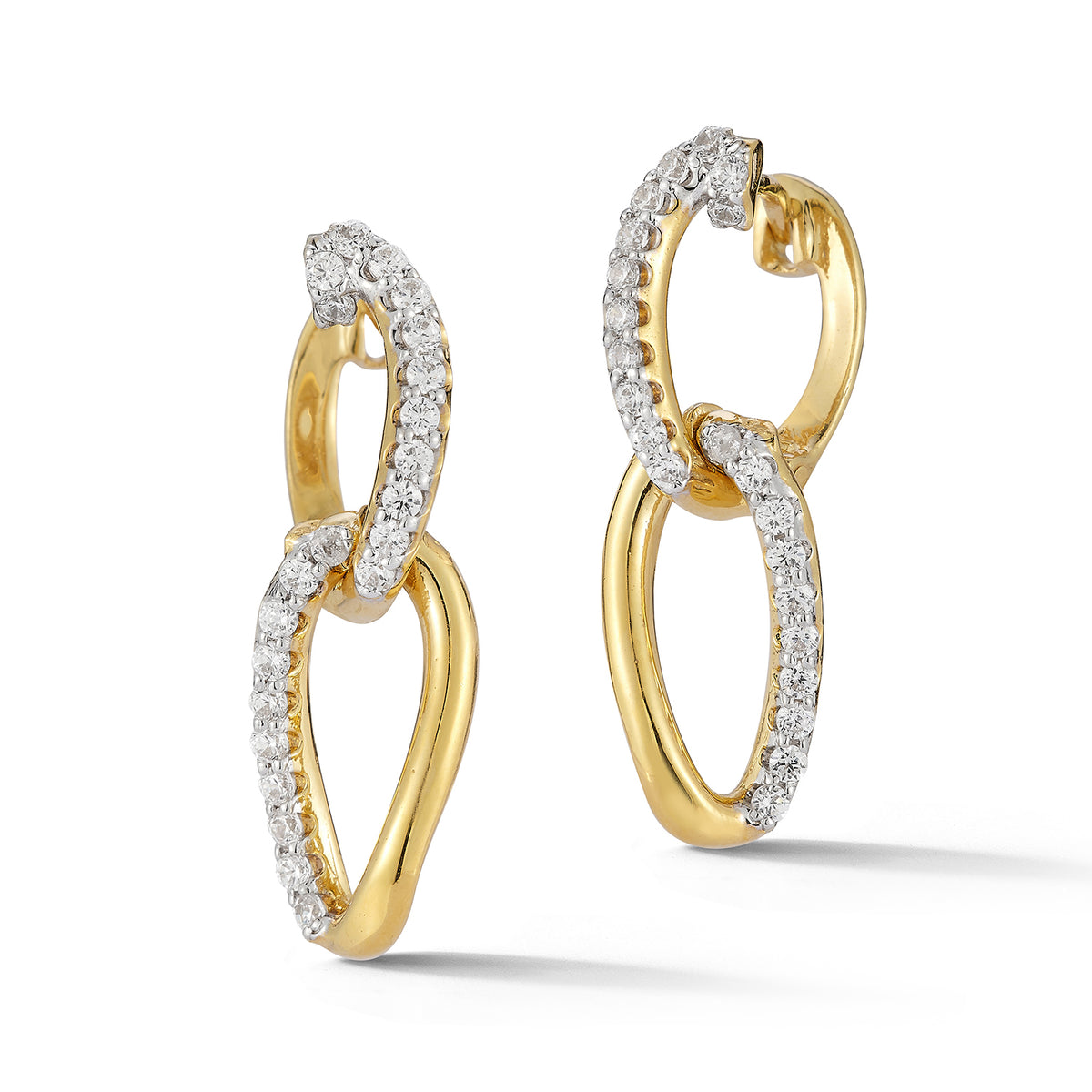 14 karat yellow gold polish-finished dangling open link earrings, accented with 0.71 carats of pave set diamonds