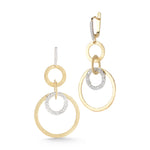 14 karat yellow gold matte-finish dangling earrings enhanced with 0 45 carat of pave set diamonds