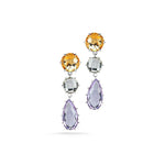 14 karat yellow gold polish finish earrings dangling with a citrine a green amethyst and an amethyst semi-precious color stones