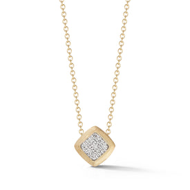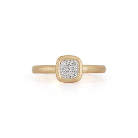 14 karat yellow gold matte-finished square-shaped stud earrings centered with 0 20 carats of pave set diamonds