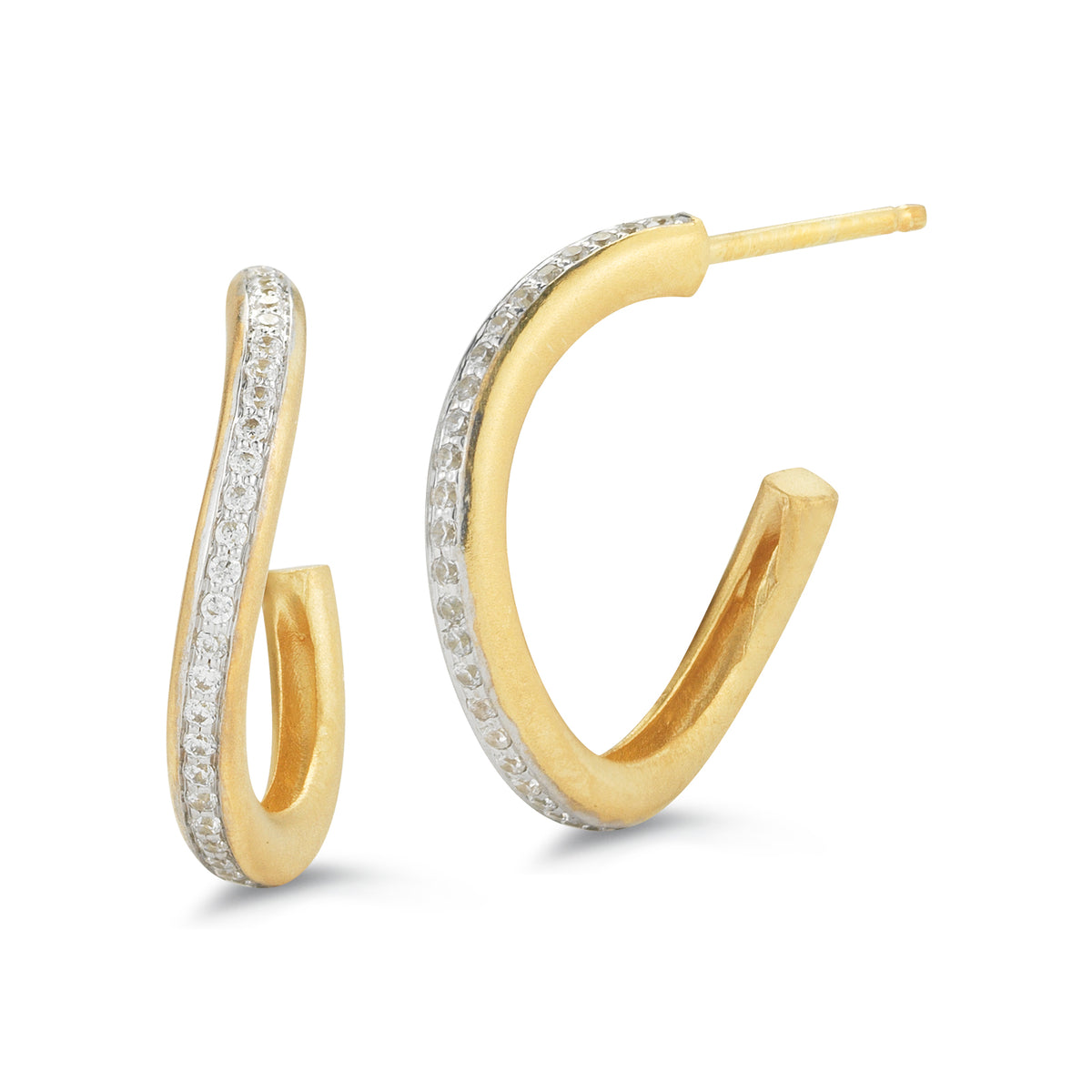 14 karat yellow gold satin-finish winding hoop earrings enhanced with 0 30 carats of pave set diamonds