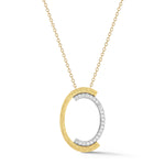 14 karat yellow gold matte and hammer-finished 33x23mm open oval pendant, enhanced with 0.47 carats of pave set diamonds, sliding on a 16" rolo chain
