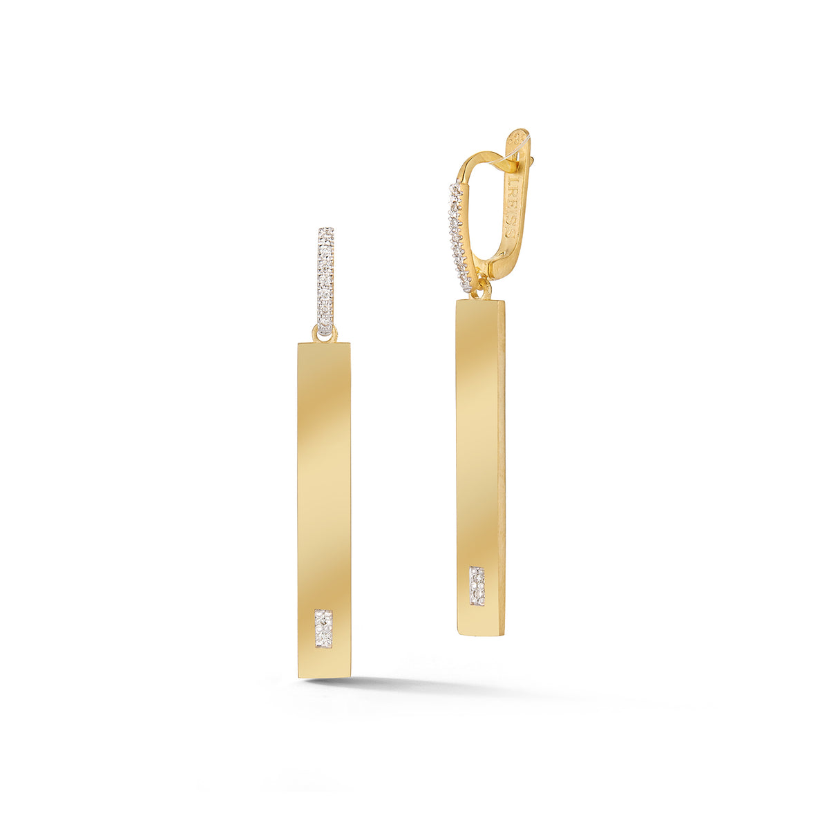 14 karat yellow gold polish-finished dangling rectangle earrings accented with 0.15 carats of pave set diamonds