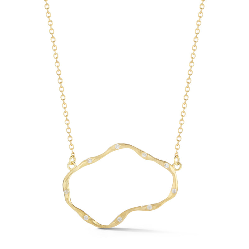 14 karat yellow gold matte-finished east-to-west open free-form necklace accented with 0 16 carats of burnish set diamonds