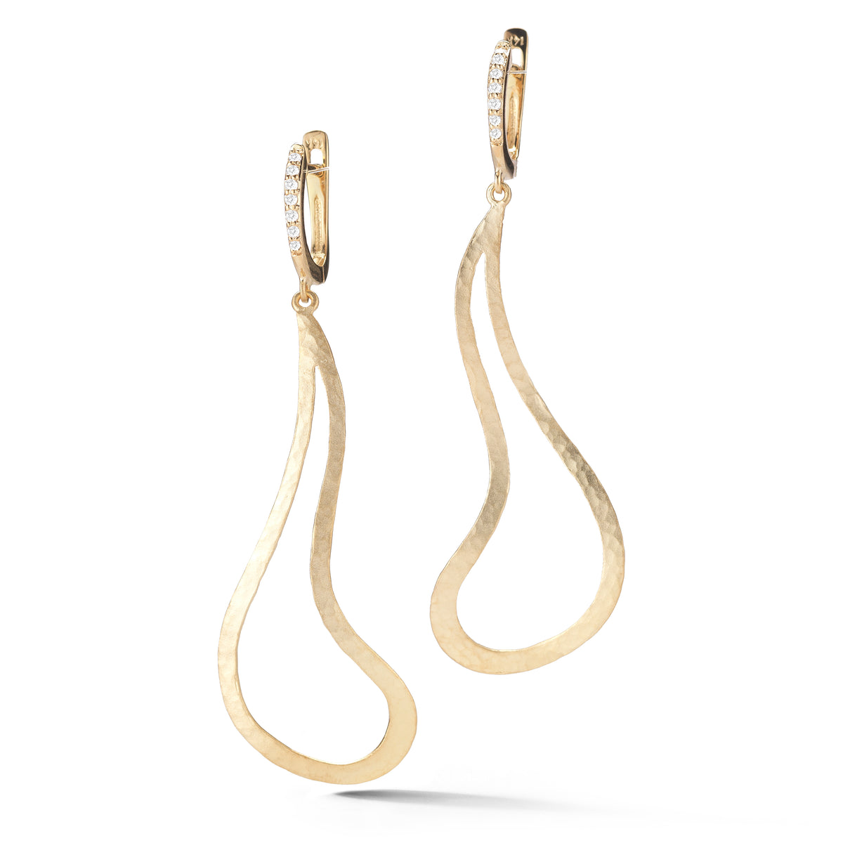14 karat yellow gold satin-finish free-form earrings accented with 0 14 carats of pave set diamonds