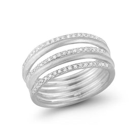 14 karat yellow gold matte-finish tube arch ring enhanced with 0 70 carats of pave set diamond bars