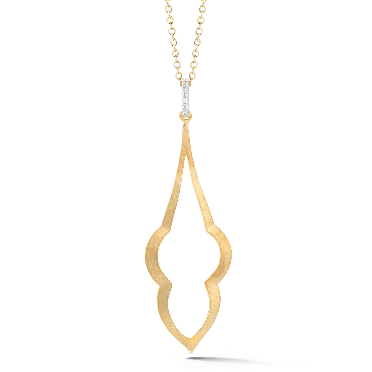 14 karat yellow gold matte and hammer-finished pendant accented with 0 06 carat of pave set diamonds
