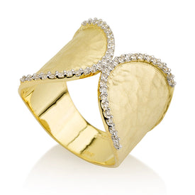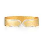 14 karat yellow gold matte and hammer-finish narrow cuff bracelet accented with 0 40 carats of pave set diamonds