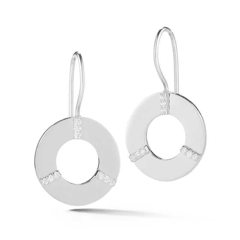 14 karat yellow gold polish-finished open circle earrings enhanced with 0 15 carats of pave set diamonds