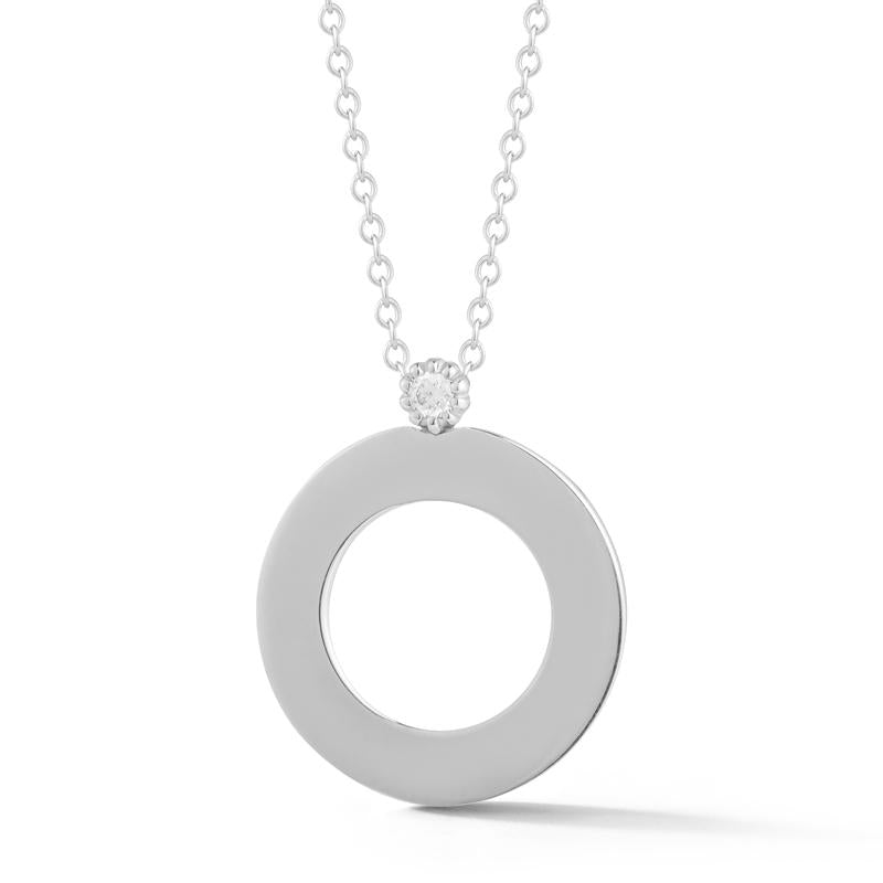 14 karat yellow gold polish-finished open circle pendant accented with 0 05 carats of prong set diamonds sliding on a 16 rolo chain