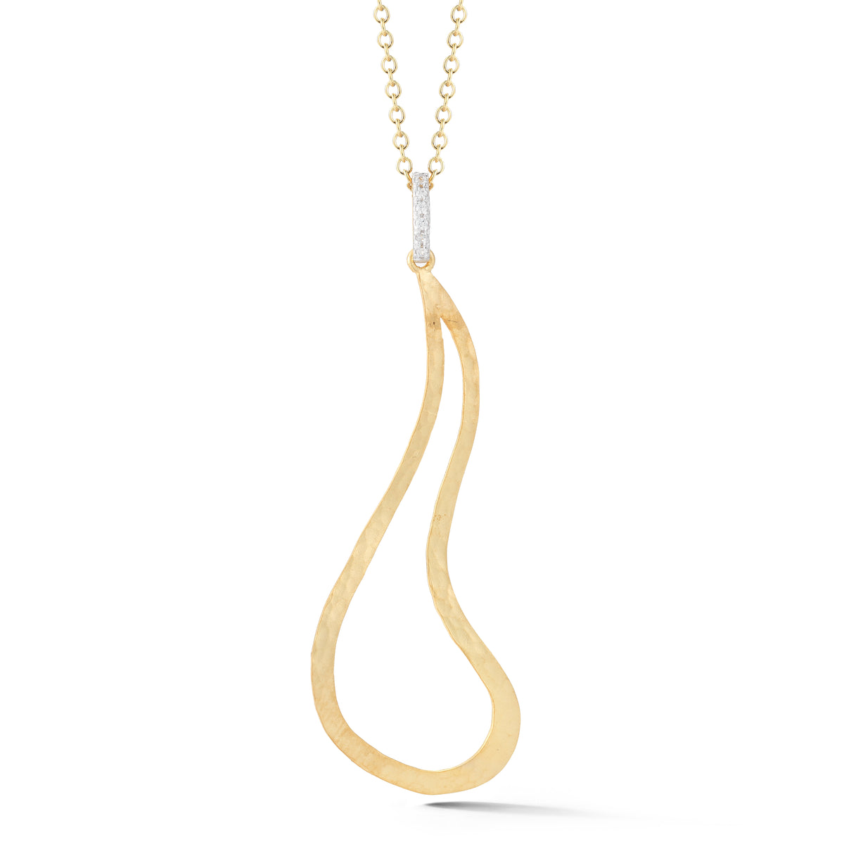 14 karat yellow gold matte and hammer-finish open free-form pendant accented with 0 06 carat of pave set diamonds