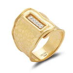14 karat yellow gold matte and hammer-finished scallop-edged button ring enhanced with 0 20 carats of pave set diamonds