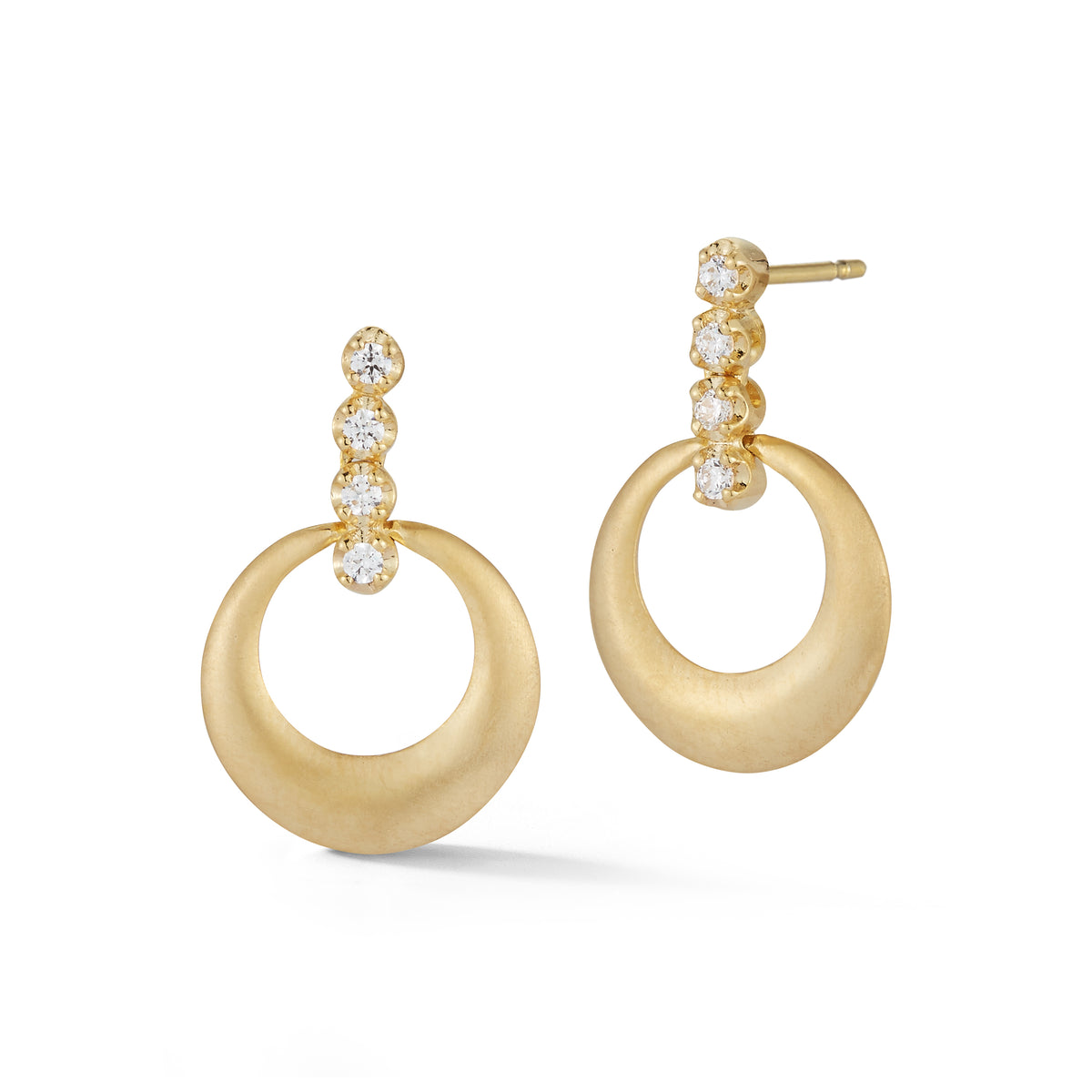 14 karat yellow gold satin-finished open-circle dangling earrings accented with 0 24 carats of prong-set diamonds