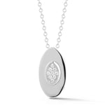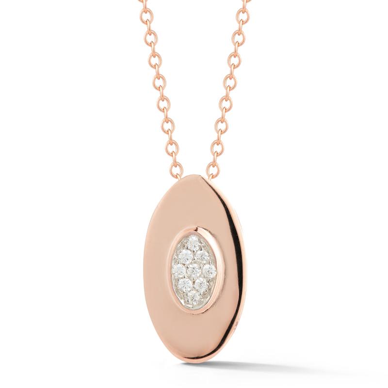 14 karat yellow gold polish-finished small oval pendant centered with 0 10 carats of pave set diamonds sliding on a 16 rolo chain