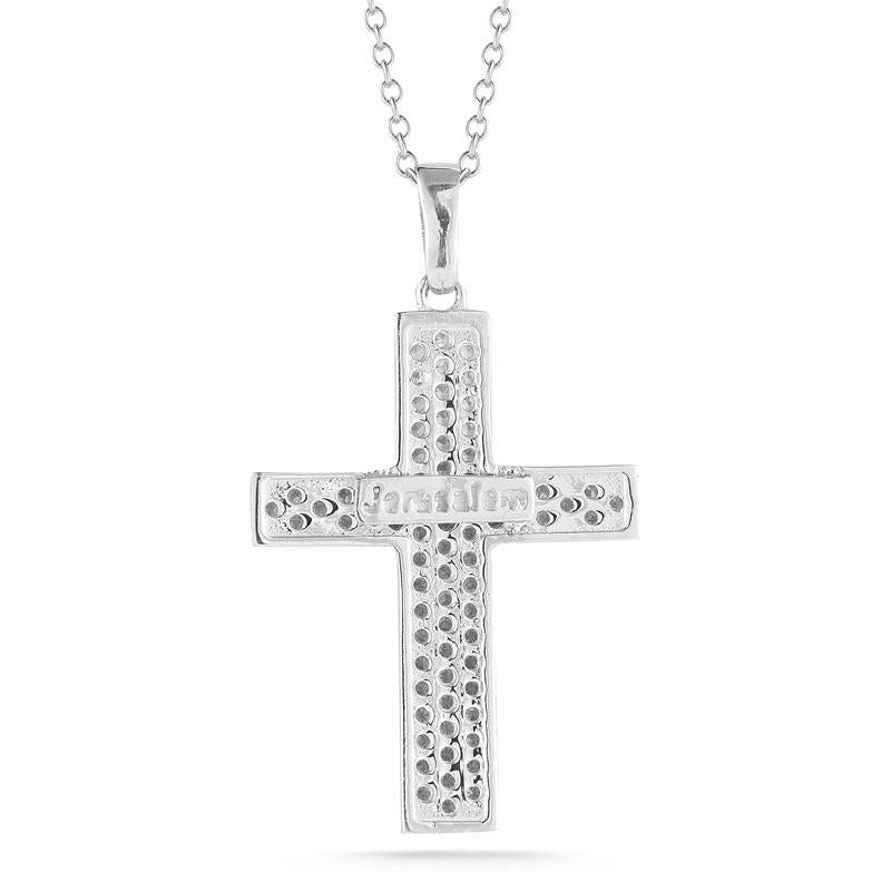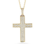 14 karat yellow gold polish-finish diamond cross pendant engraved with the jerusalem imprint on the back and enhanced with 0 55 carat of pave set diamonds