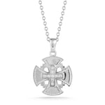 14 karat yellow gold polish-finish jerusalem cross pendant engraved with the jerusalem imprint on the back and enhanced with 0 10 carat of pave set diamonds