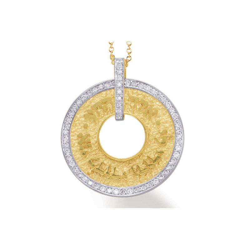 14 karat white gold matte and textured-finished my beloved song of solomon 6 3 pendant enhanced with 0 45 carat of pave set diamonds 27mm in diameter