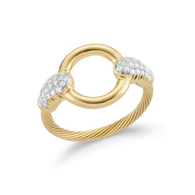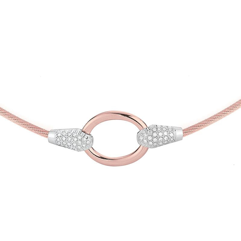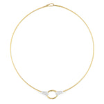 14 karat yellow gold polish-finished open oval necklace accented with 0 30 carats of pave set diamonds