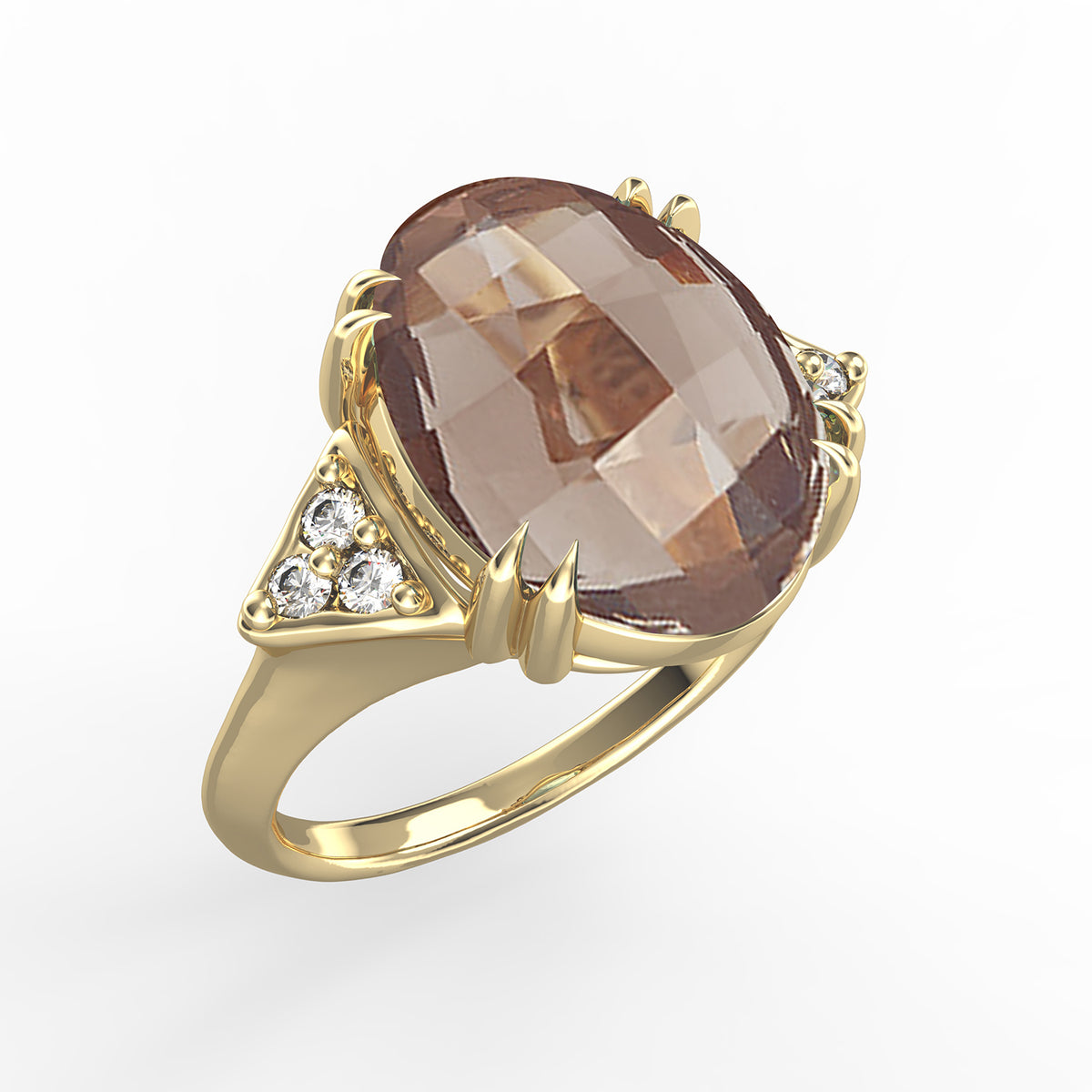 14K Gold 0.09 ct. tw. Diamond & 3.8CT Smokey Topaz Cocktail Ring