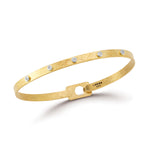 14 karat yellow gold 7" matte and hammer-finished 4mm bangle bracelet, accented with 0.10 carats of scattered bezel set diamonds