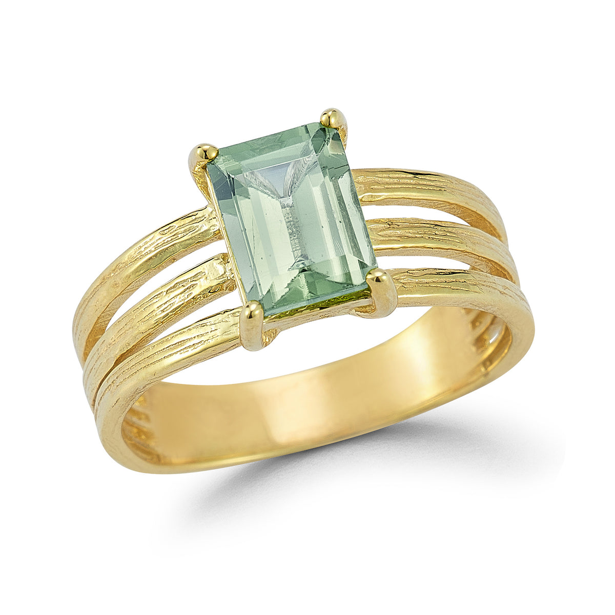 14K Gold 1.3CT 8x6mm 1.5CT Green Amethyst Cocktail Ring
