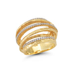 14 karat yellow gold matte-finished gallery ring enhanced with 0 50 carat of pave set diamonds