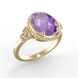 14K Gold 0.13 ct. tw. Dia. & 7.8CT Amethyst Color Stone