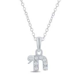 14 karat white gold polish-finish chai pendant enhanced with 0 16 carat of pave set diamonds sliding on a 16 rolo chain 9hx11w mm