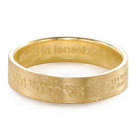 14 karat yellow gold matte-finish hebrew inscribed ani le dodi i am my beloved s and my beloved is mine song of solomon 6 3 judaica ring enhanced with 0 06 carat of a pave set diamond heart made in israel