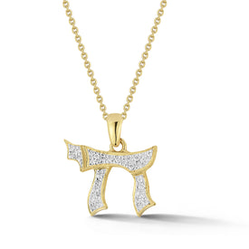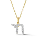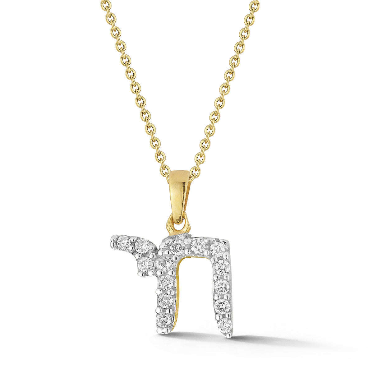 14 karat yellow gold polish-finish chai pendant enhanced with 0 16 carat of pave set diamonds sliding on a 16 rolo chain 9hx11w mm