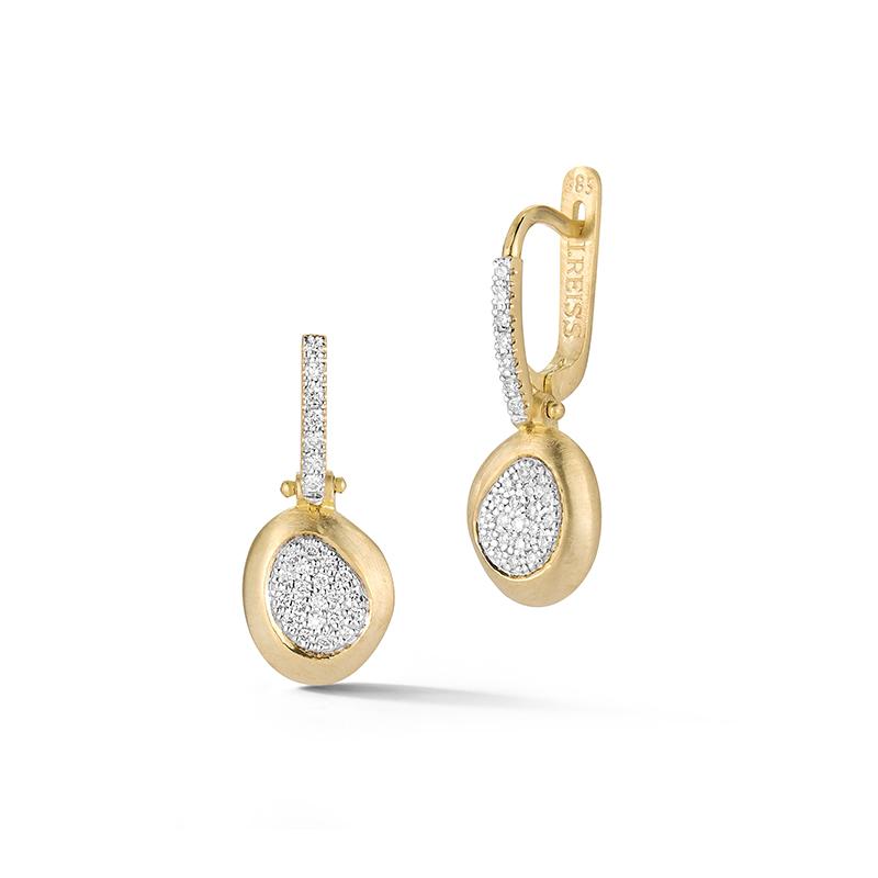 14 karat yellow gold satin-finished dangling free-form earrings accented with 0 25 carats of pave set diamonds