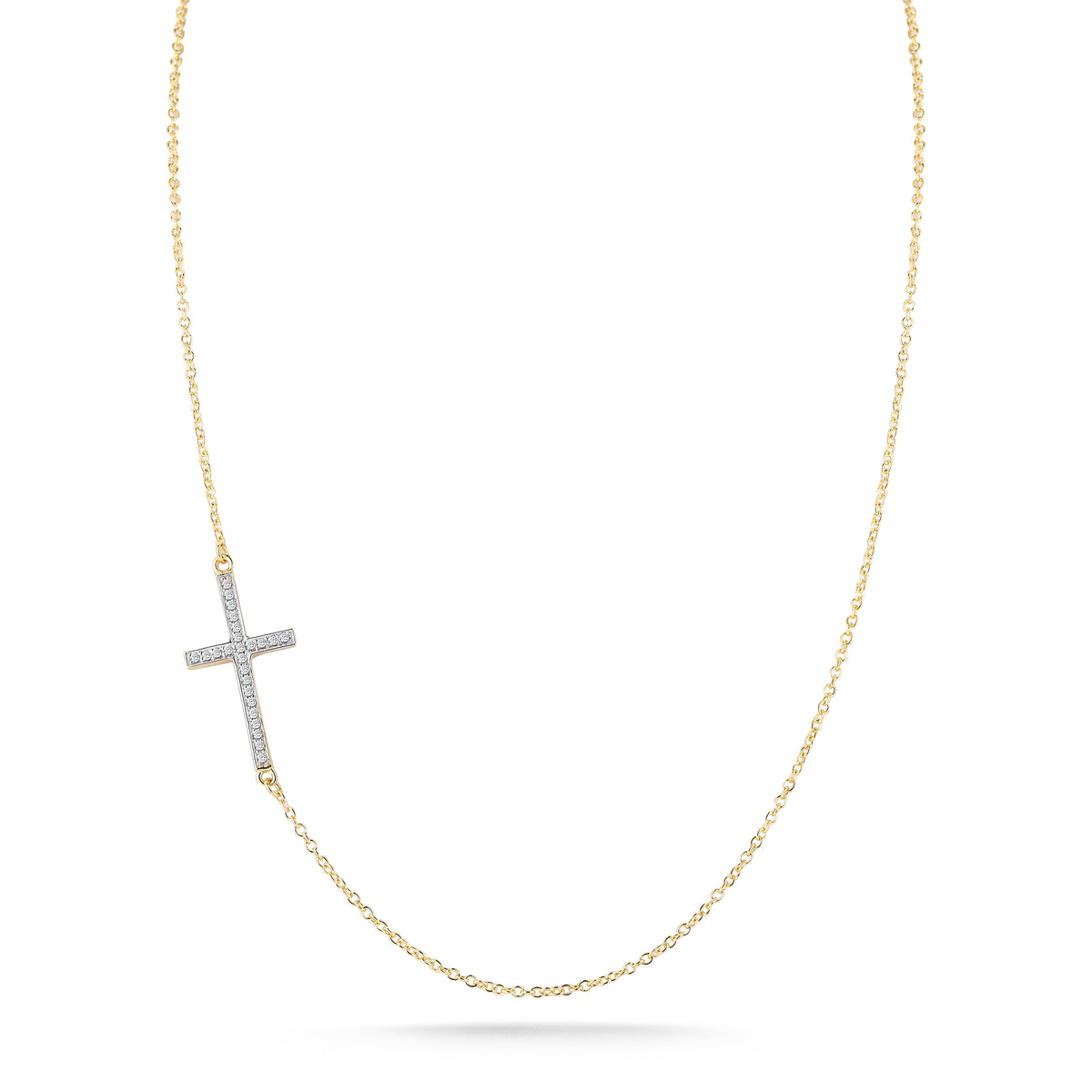 14K-Y EAST-TO-WEST CROSS NECK., 0.25CT